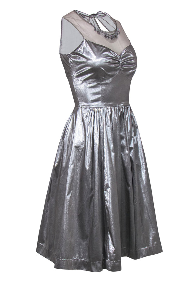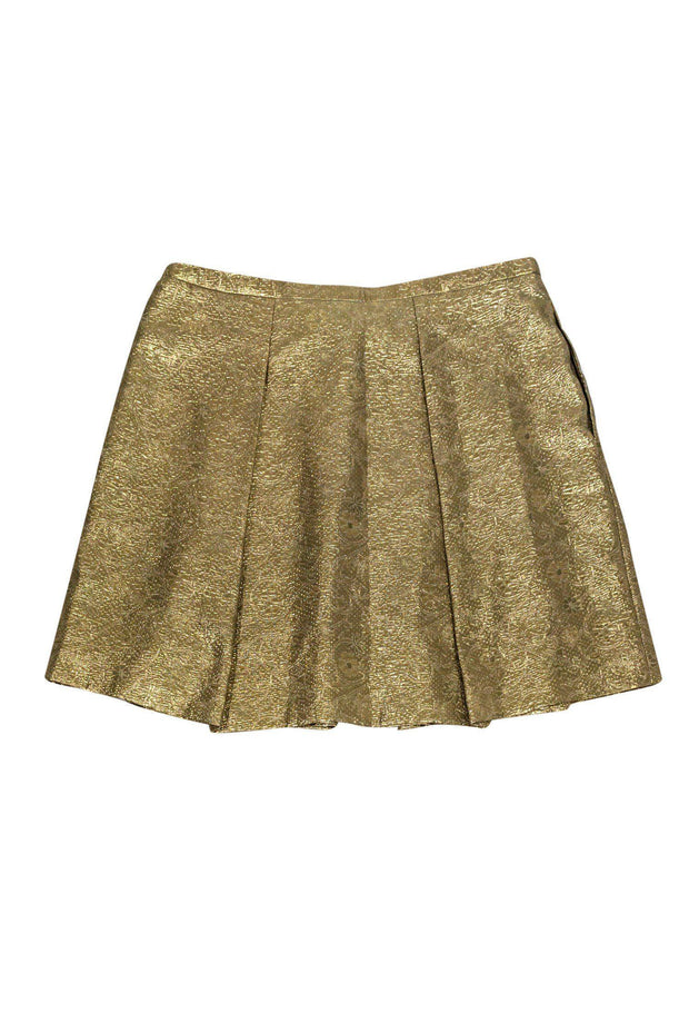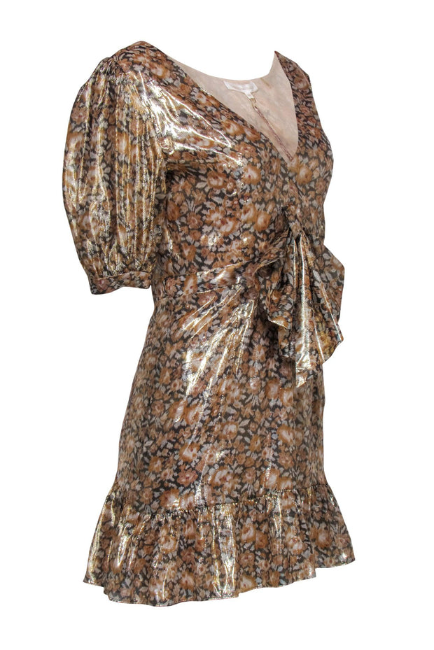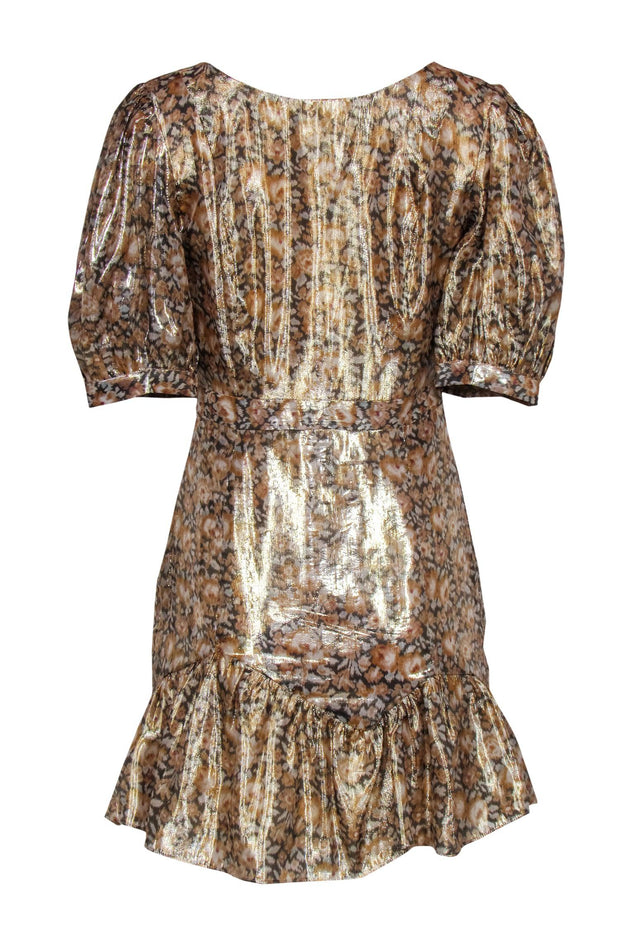 Love Shack Fancy - Metallic Gold "Lena" Mini Dress w/ Front Bow Sz M