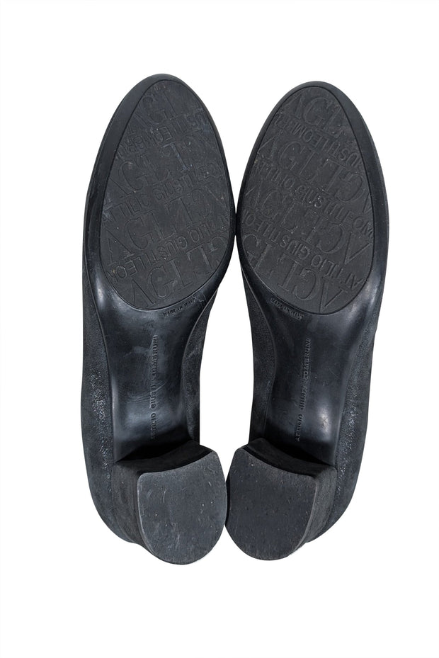 AGL - Grey Suede Bow Toe Block Heel Shoes Sz 6