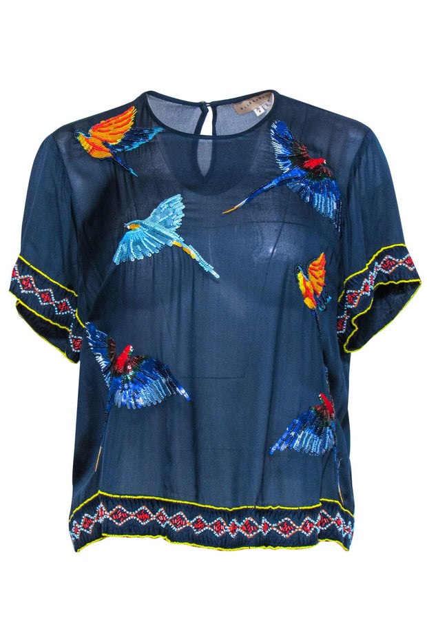 Elle Sasson - Blue Printed Silk Maxi Skirt Sz 4