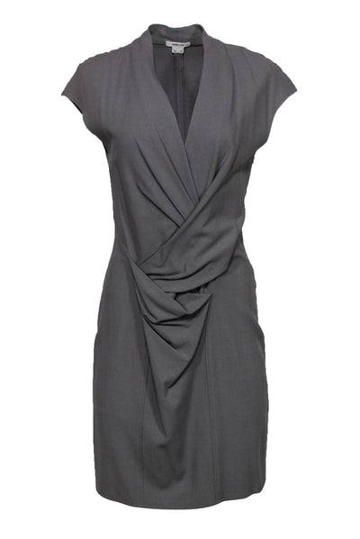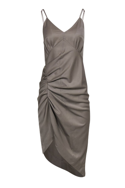 Helmut Lang - Taupe Sleeveless Ruched Fitted Midi Dress w/ Asymmetrical Hem Sz 2