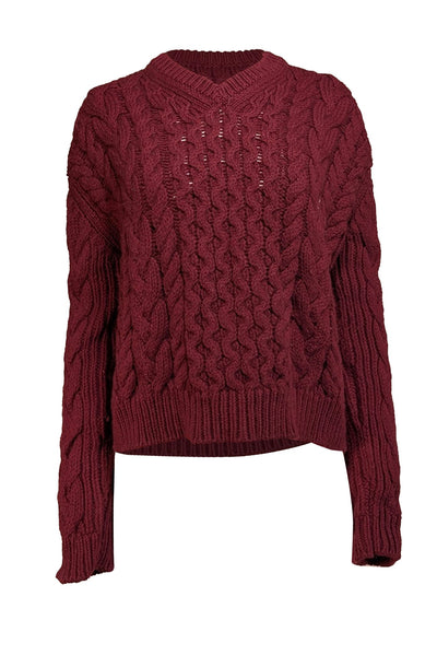 Joseph - Burgundy Merino Wool Chunky Cable Knit Sweater Sz S