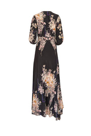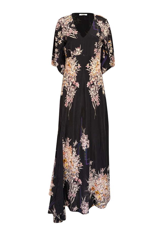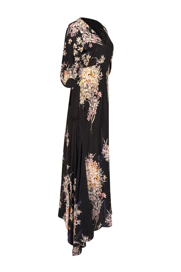 Robert Graham - Black & Multi Color Floral Long Sleeve Maxi Dress Sz M