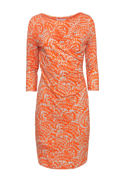 St. Emile - Taupe & Orange Print Midi Wrap Dress Sz 6