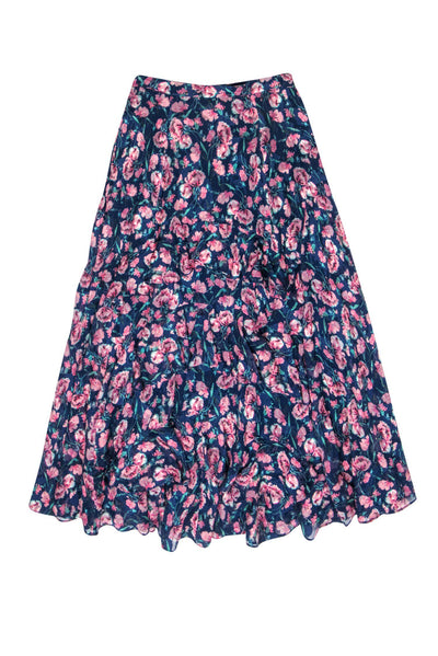 Rebecca Taylor - Blue & Pink Floral Print Tiered Ruffle Maxi Skirt Sz 0