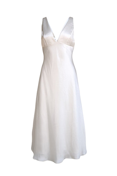 Amsale - White V-Neck Sleeveless Satin Midi Dress Sz 8