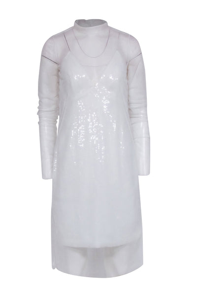 Amsale - White Sequin Mini Dress w/ Sheer Overlay Detail Sz 6