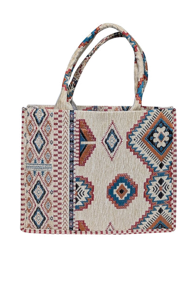 Baggyz - Cream, Teal, Red, & Orange Print Tapestry Tote