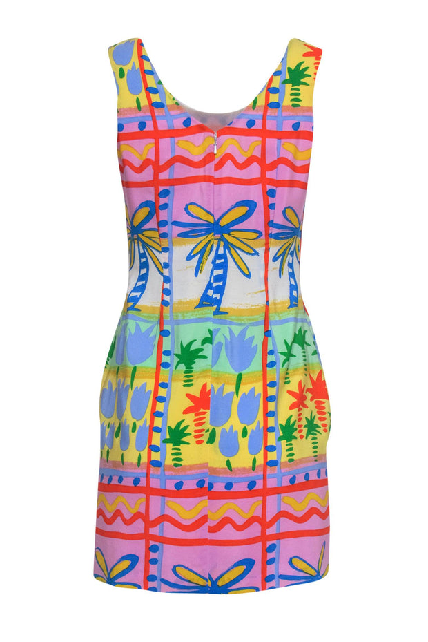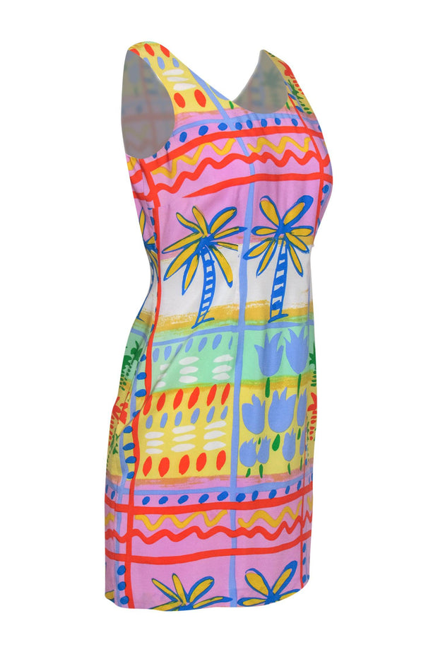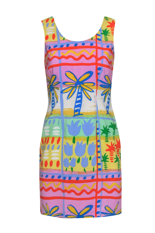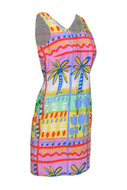 Bloomingdale's - Purple, Blue & Yellow Tropical Print Silk Dress Sz 6P