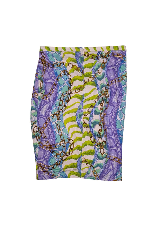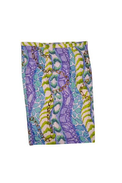 Bluemarine - Purple, Blue, & Green Floral Pleated Waist Skirt Sz 12