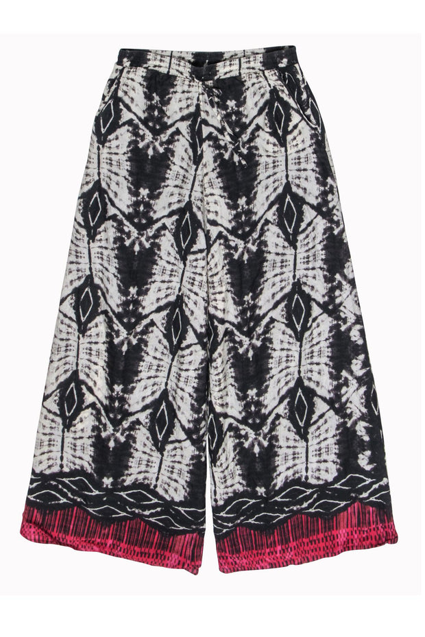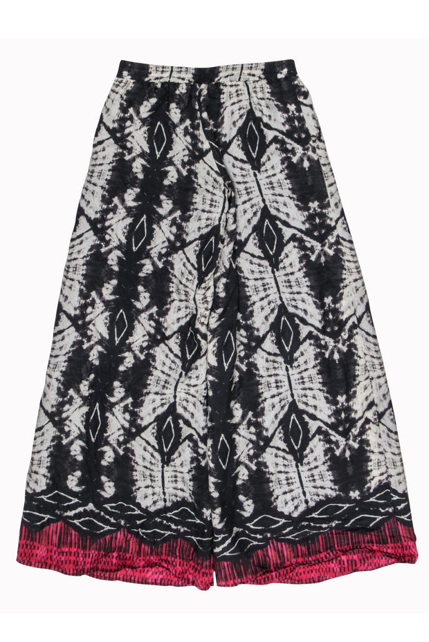 Da-Nang - Black & Cream Tie Dye w/ Red Trim Silk Wide Leg Pants Sz S