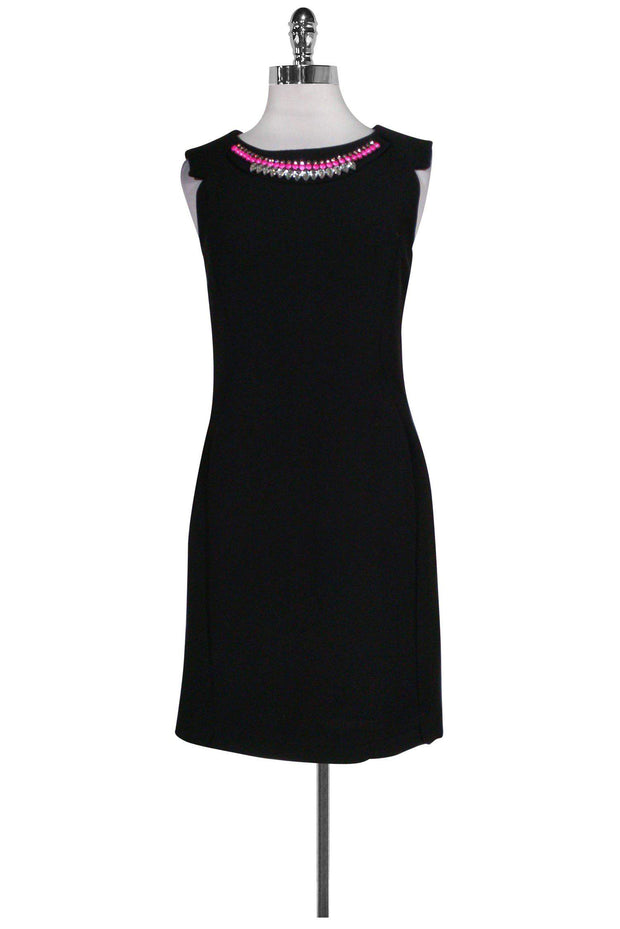 McGinn - Black Shift w/ Jeweled Neck Dress Sz 4