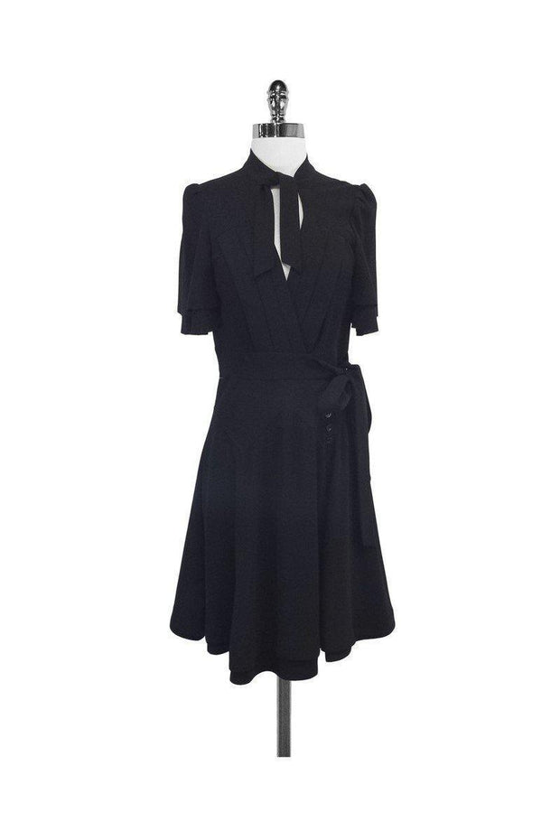 Phi - Black Silk Short Sleeve Wrap Dress Sz 6