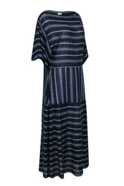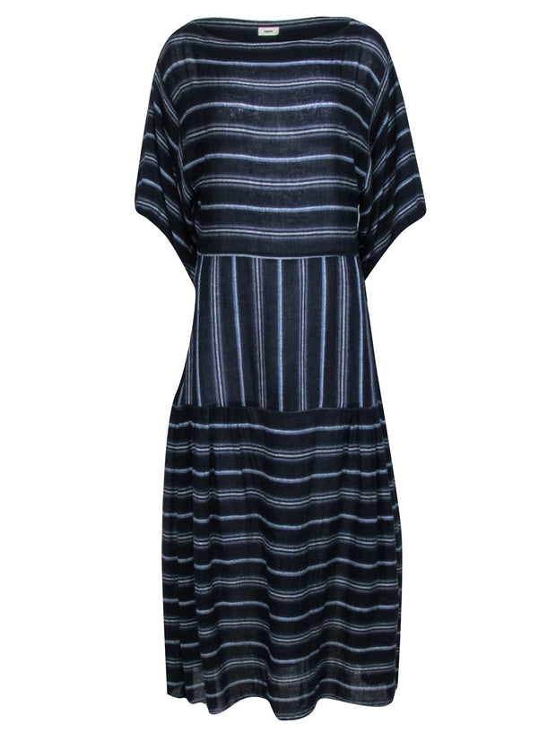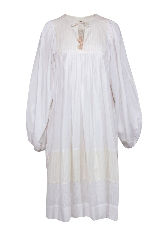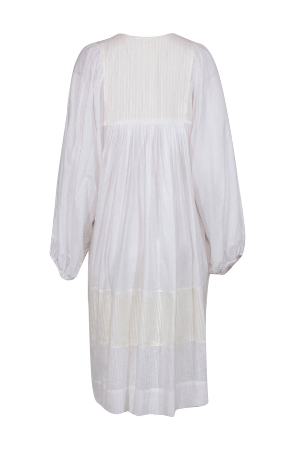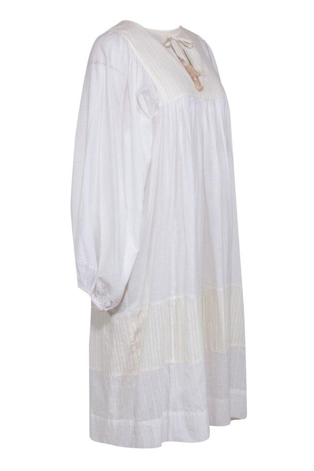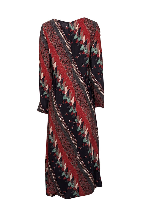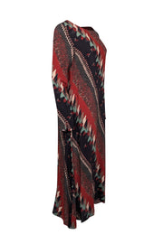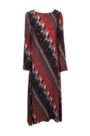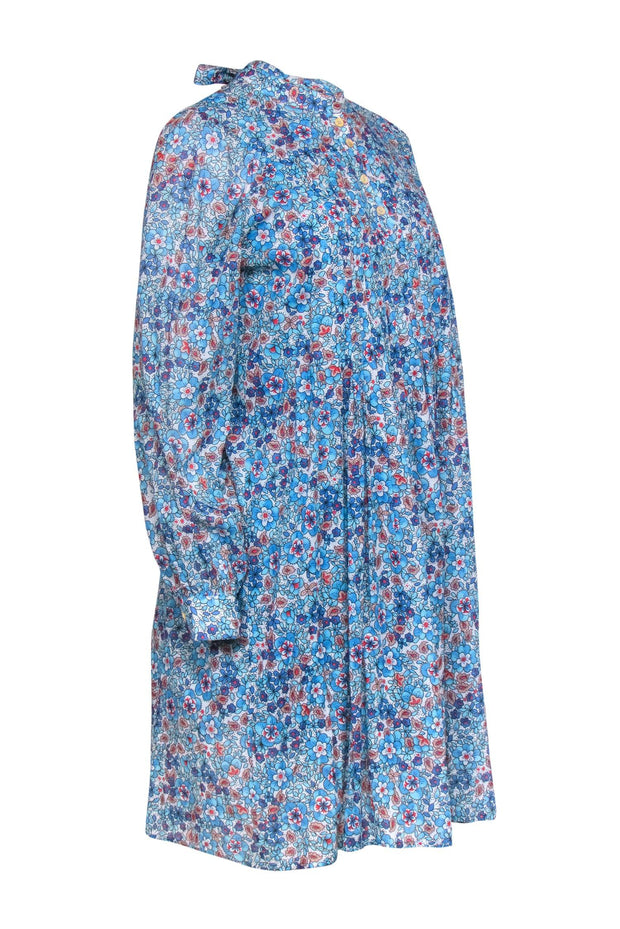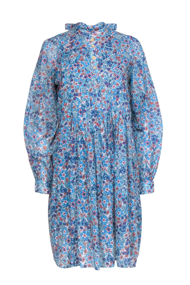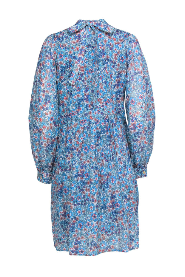 Warm - Blue Floral Print Long Sleeve Pleated Shift Dress Sz 0