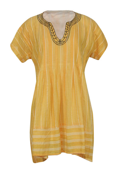 LemLem - Yellow Pinstripe Keyhole Ruffle Dress Sz S