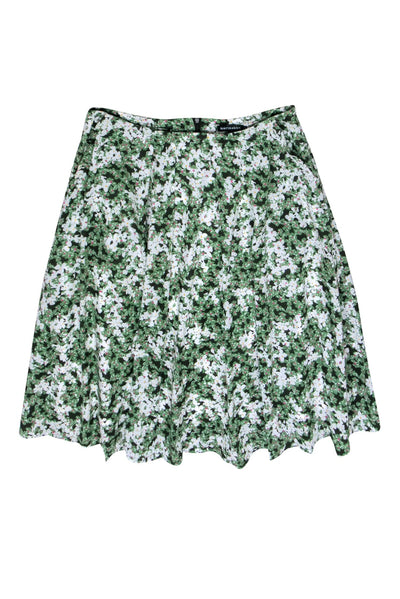 Marimekko - Green & White Floral Print Pleated Midi Skirt Sz 12